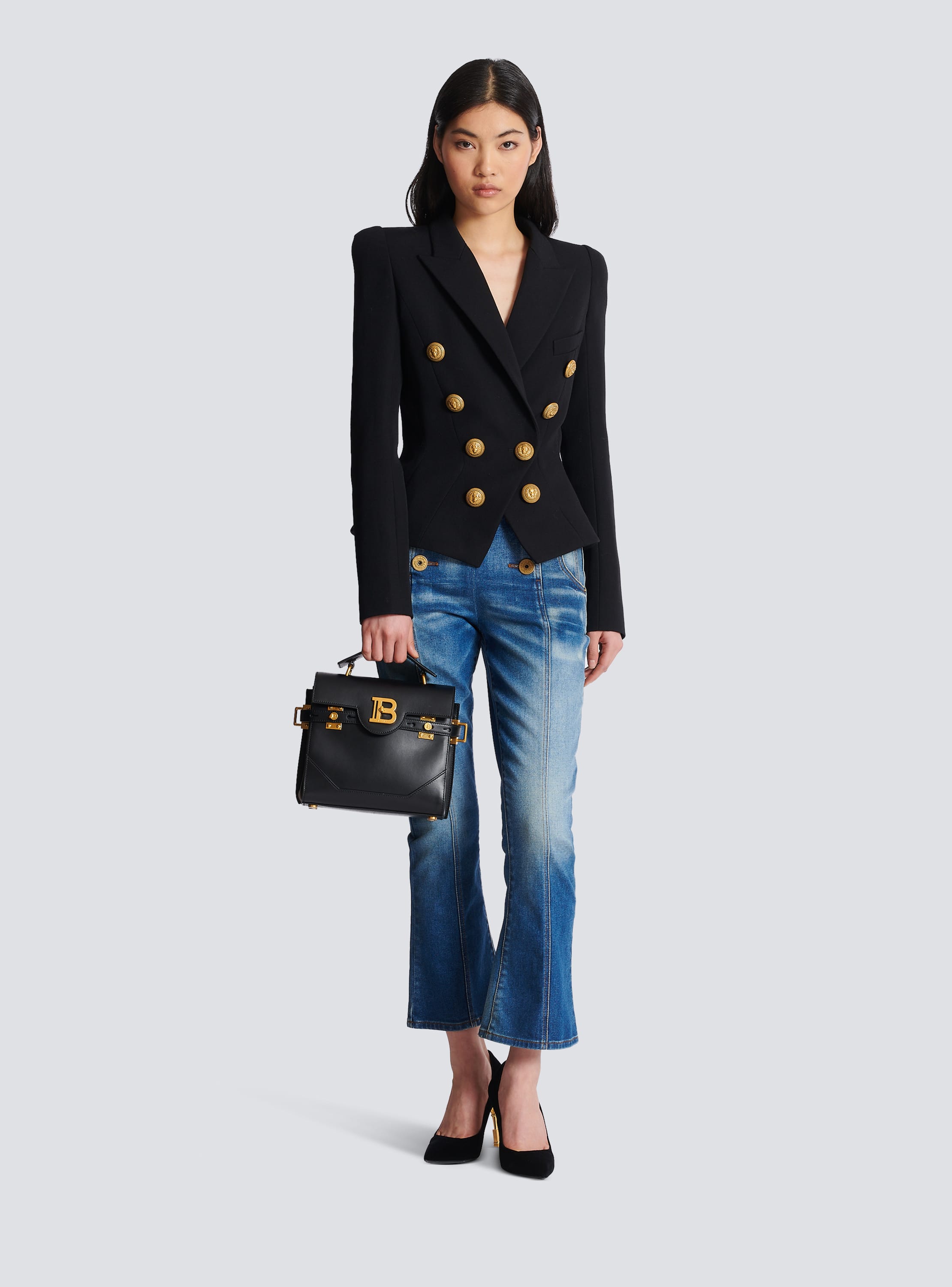 8 button cinched waist jacket black Women BALMAIN Very well made.