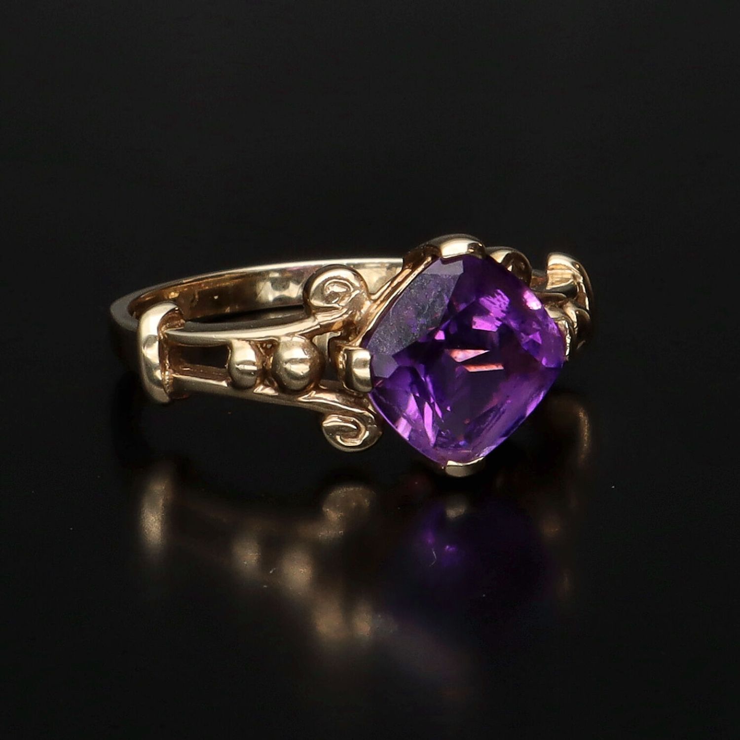 Vintage 9ct Gold Cushion Cut Amethyst Ring Jewellery Gold Very well made.