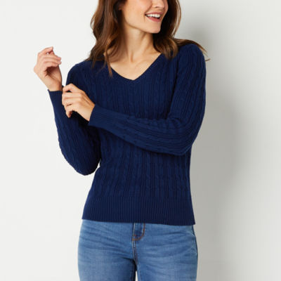 St. John s Bay Womens V Neck Cable Knit Pullover Sweater Very well made.