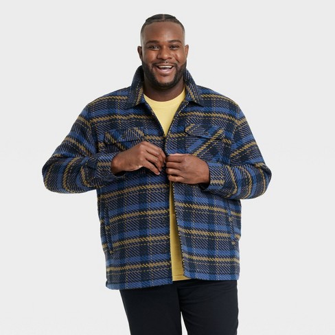 Men s Big Tall Plaid Woven Shirt Jacket Goodfellow Co Blue Very well made.