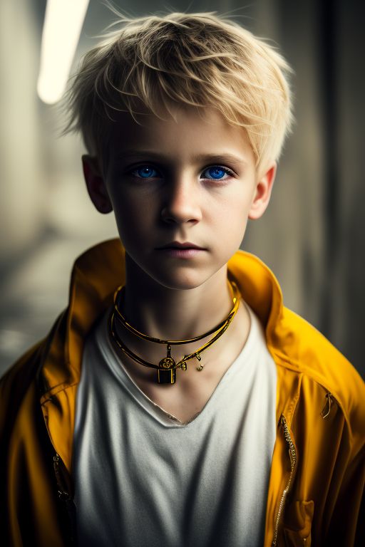 ready gaur841 in a future city a 12 years old boy with blond Very well made.