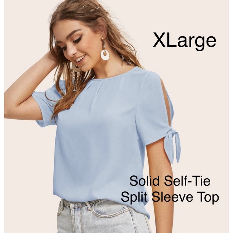 SHEIN LUNE Tie Neck Butterfly Sleeve Contrast Binding Tie Front Very well made.
