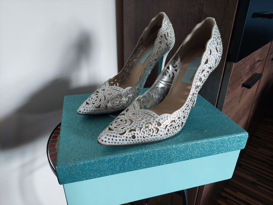 Szpilki r 38 Blue by Betsey Johnson ELSA silver srebrne Pyskowice Very well made.