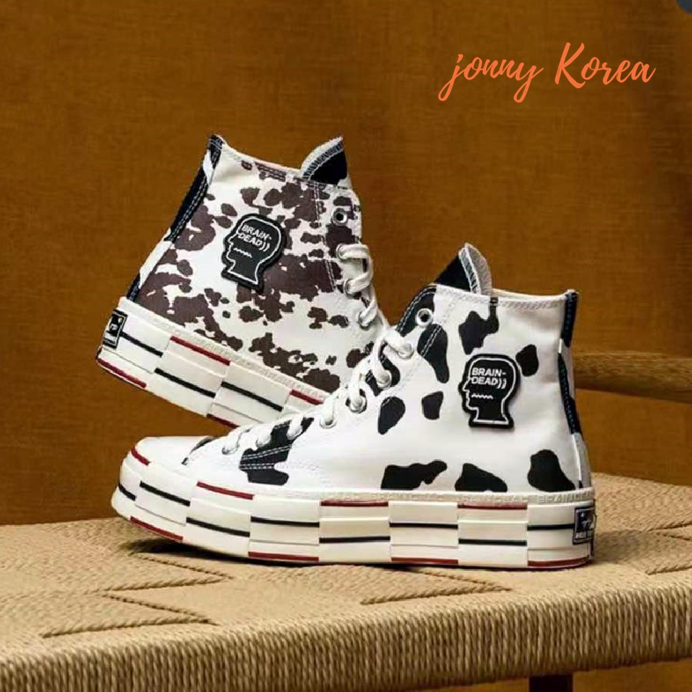 Converse and Brain Dead made a cow print Chuck 70 shoe that can t Very well made.