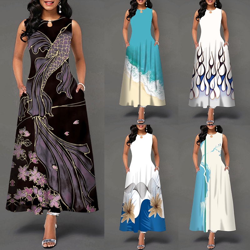 Summer Casual Sleeveless Print fish beach pattern Maxi Dress A Very well made.