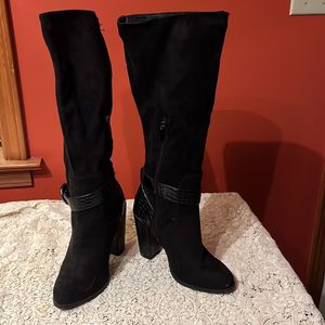 Size 8 Cato Black Suede Feel Knee High Boots Very well made.